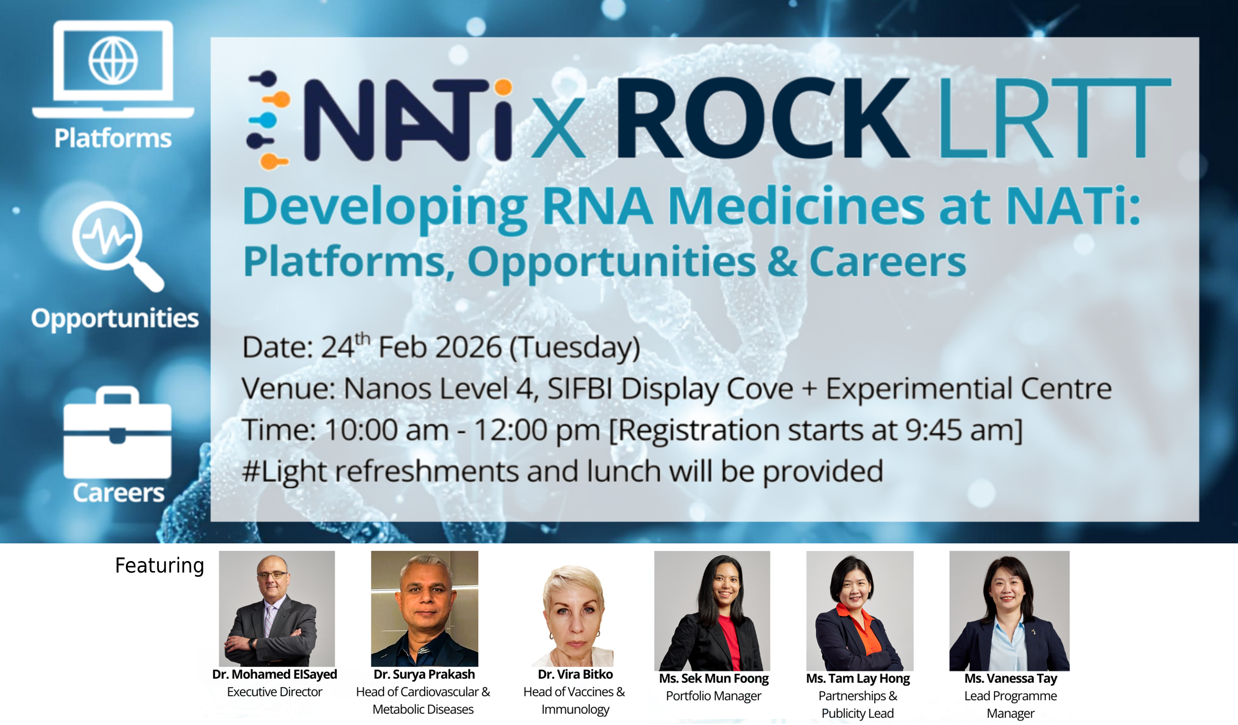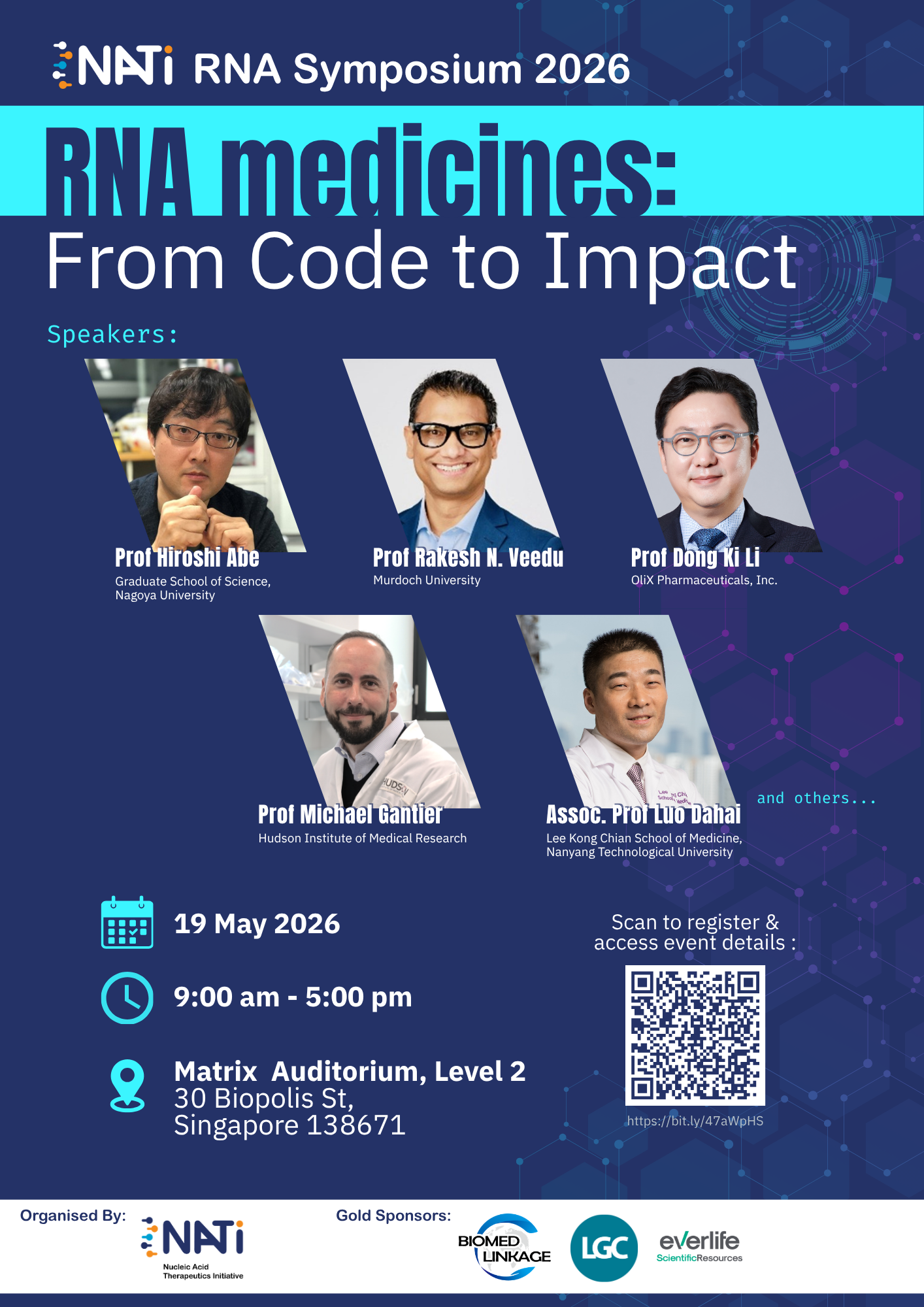 The Nucleic Acid Therapeutics Initiative (NATi)’s annual symposium returns this year with RNA Medicines: From Code to Impact. The conference focuses on how advancements in RNA and oligonucleotide science can be translated into meaningful therapeutic benefits. Bringing together experts across discovery, platform development, and translation, the symposium will explore scientific breakthroughs, enabling capabilities, and collaborative pathways that accelerate the journey from sequence design to real‑world patient impact.